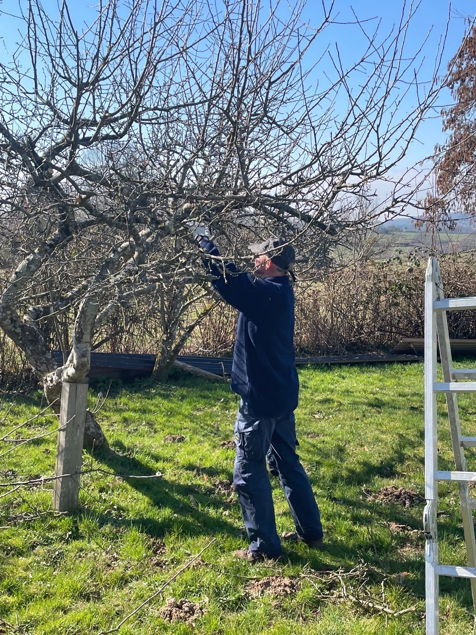 Ook dit jaar hebben we de fruitbomen is maart weer gesnoeid. Heerlijk in de voorjaarszon konden we overdag al lekker van het mooie weer genieten. Gelukkig was Rick dit keer weer eens mee, want na al die jaren blijf ik het lastig vinden om de appel- en perenbomen goed bij te houden. Hij heeft ze dan ook goed onderhanden genomen. En ook in de voortuin is de moerbei tot op de belangrijskte gesteltakken teruggesnoeid.