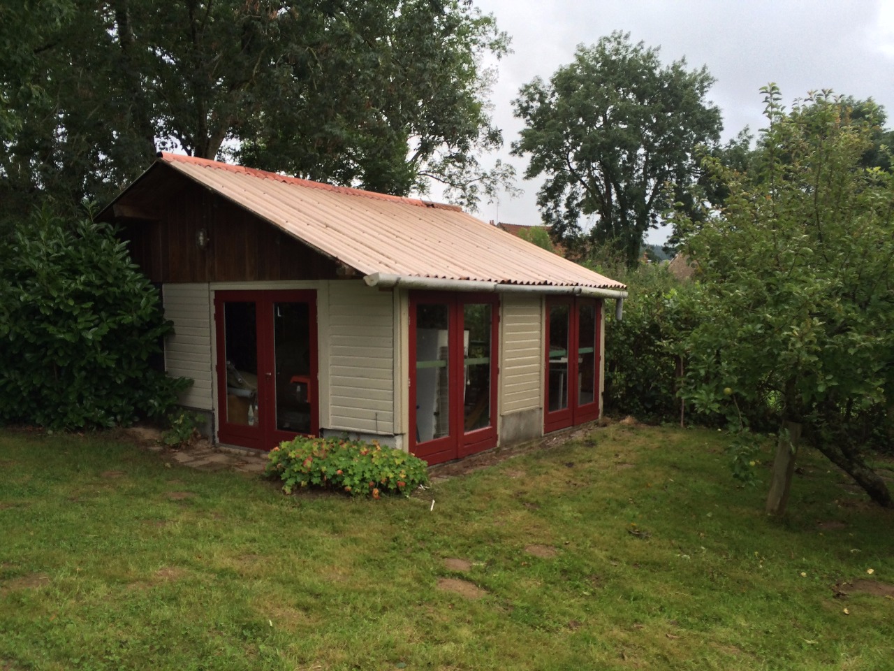 Op het terrein staan nog een paar 'Malle Pietje' schuurtjes: bijgebouwtjes die dienst doen als werkplaats, opslag of speelkamer. Je kunt er allerhande gereedschap, moertjes, schoffels, beitels, etc. vinden. Verder staan er nog twee caravans, waarin je met twee of drie personen kunt slapen. Onze kinderen hebben hier al menig slaap- en leesuurtjes doorgebracht. Helemaal achterin staat nog een oud clubhuis waar je je kan vermaken met tafeltennissen, darten, etc. en waar de zitmaaier staat. Het is wel wat stoffig (dus deuren open zetten als je aankomt) en je moet niet bang zijn voor spinnen!. Voor kinderen een avontuurlijke plek...