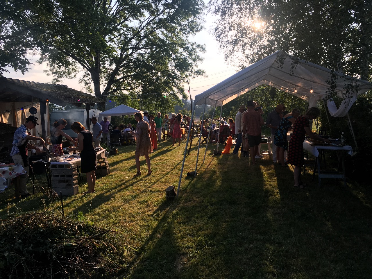 Afgelopen weekeind hebben we een wel heel bijzondere belevenis meegemaakt. Ineke heeft haar verjaardag op La Pierre Haute gevierd met vijftig vrienden! Uit Nederland waren 35 vrienden afgereisd naar ons dorp (en omstreken) en ook onze Franse buren en vrienden waren ruim aanwezig. Alle gites in de omtrek waren vol en een aantal vrienden kampeerden met tenten in de tuin.
