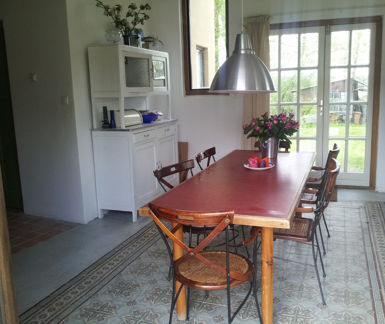 Om het comfortniveau te verhogen hebben we er eigenhandig een deel aan gebouwd. Zo beschikt het huis nu over een grote eetkeuken en twee extra slaapkamers. Eigenlijk is de keuken de heerlijkste plek van het huis. Niet alleen vanwege de moderne apparatuur zoals een vaatwasser, elektrische kookplaat, oven en koelkast, maar ook vanwege het enorme granieten aanrechtblad (bijna 5 meter) en de prachtige uitkijkjes naar buiten. En de biologische kruiden staan voor de deur in de kruidentuin (samen met de aalbessen, kruisbessen, frambozen en aardbeien).