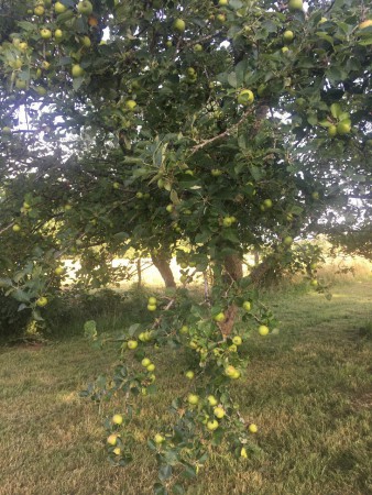 Wat een mooie bijkomstigheid was: het fruit deed het dit jaar geweldig. Dat begon al met de kersenboom begin juli. Waar we andere jaren vijf of zes kersjes vonden, hing de boom nu werkelijk vol met kersen. En ook de takken van de appelbomen hingen al snel op de grond!