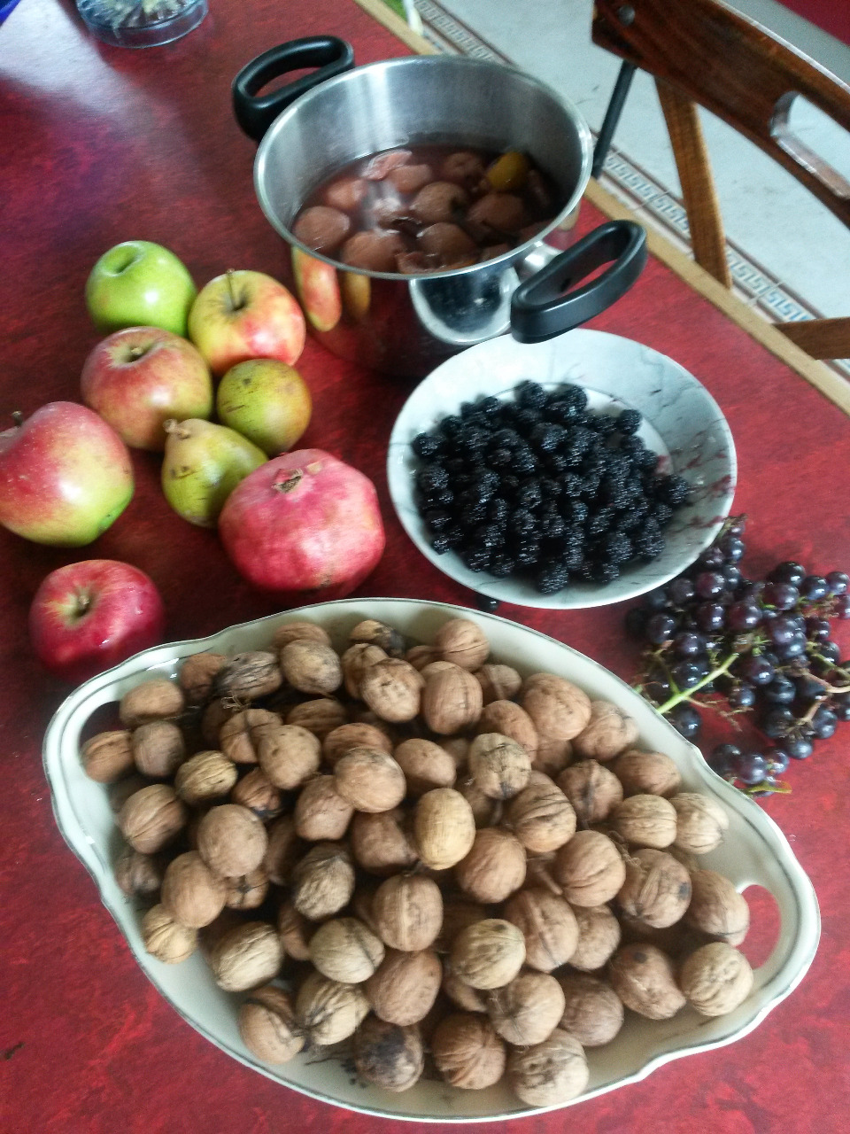 En met het fruit valt het uiteindelijk ook nog mee: walnoten, stoofperen, appels, en heerlijk zoete druiven!