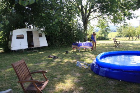 Bij mooi weer kun je een zwembadje opzetten..., of de tafeltennistafel uit het Clubhuis buiten zetten.